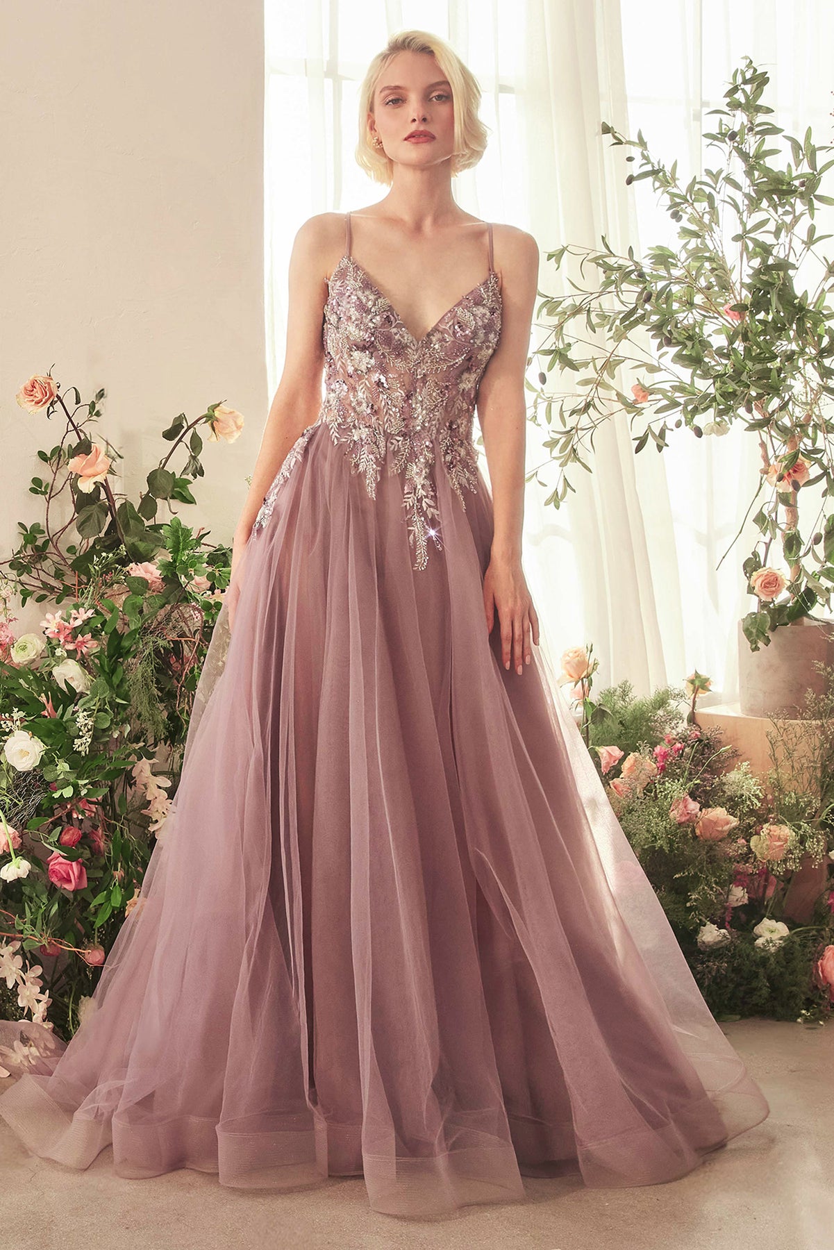 ANDREA & LEO A1419 English Violet A-Line Layered Tulle Gown Of Whimsy