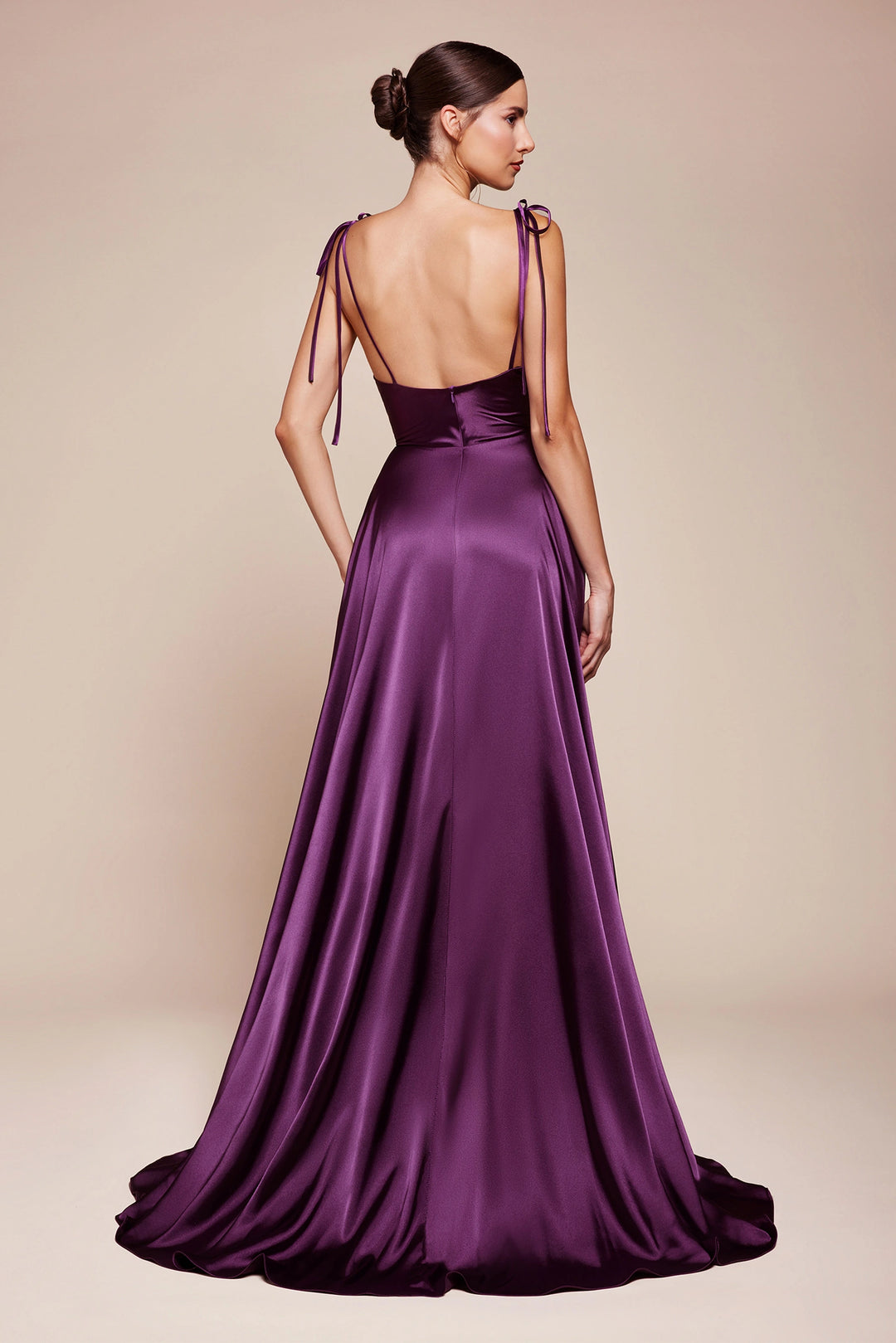 Embody celestial elegance in the Cinderella Divine BD104, a captivating and sleek long gown designed to make you shine like a star. The sleeveless bodice features a refined cowl neckline, adding a touch of sophistication to your ensemble. A mid-open scoop back, complemented by delicate tie spaghetti straps, offers both style and comfort. The luxurious fabric drapes effortlessly, cascading into a full-length A-line skirt that creates a graceful and flattering silhouette. A daring slit at the waist adds a hint of allure, enhancing the gown's fluidity with every step. Command attention and light up any event with this breathtaking design.