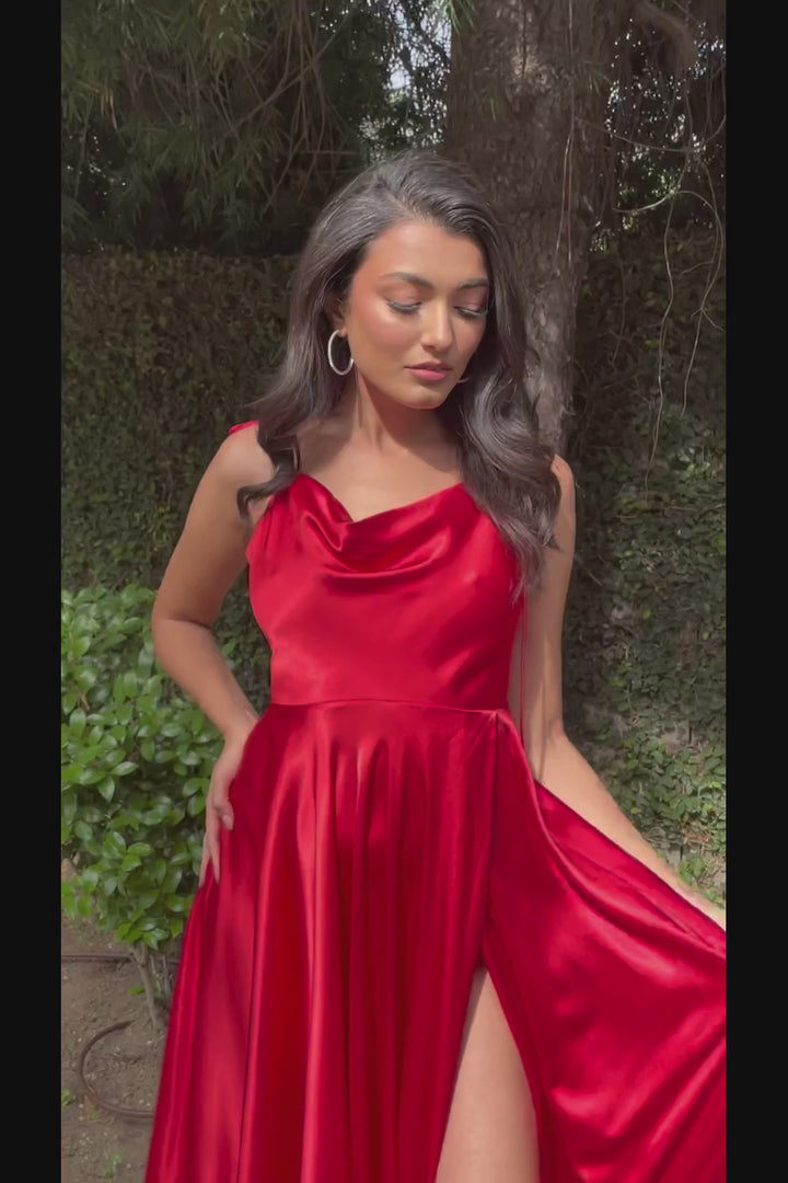 CINDERELLA DIVINE BD104 A-Line Cowl Neckline Satin Dress