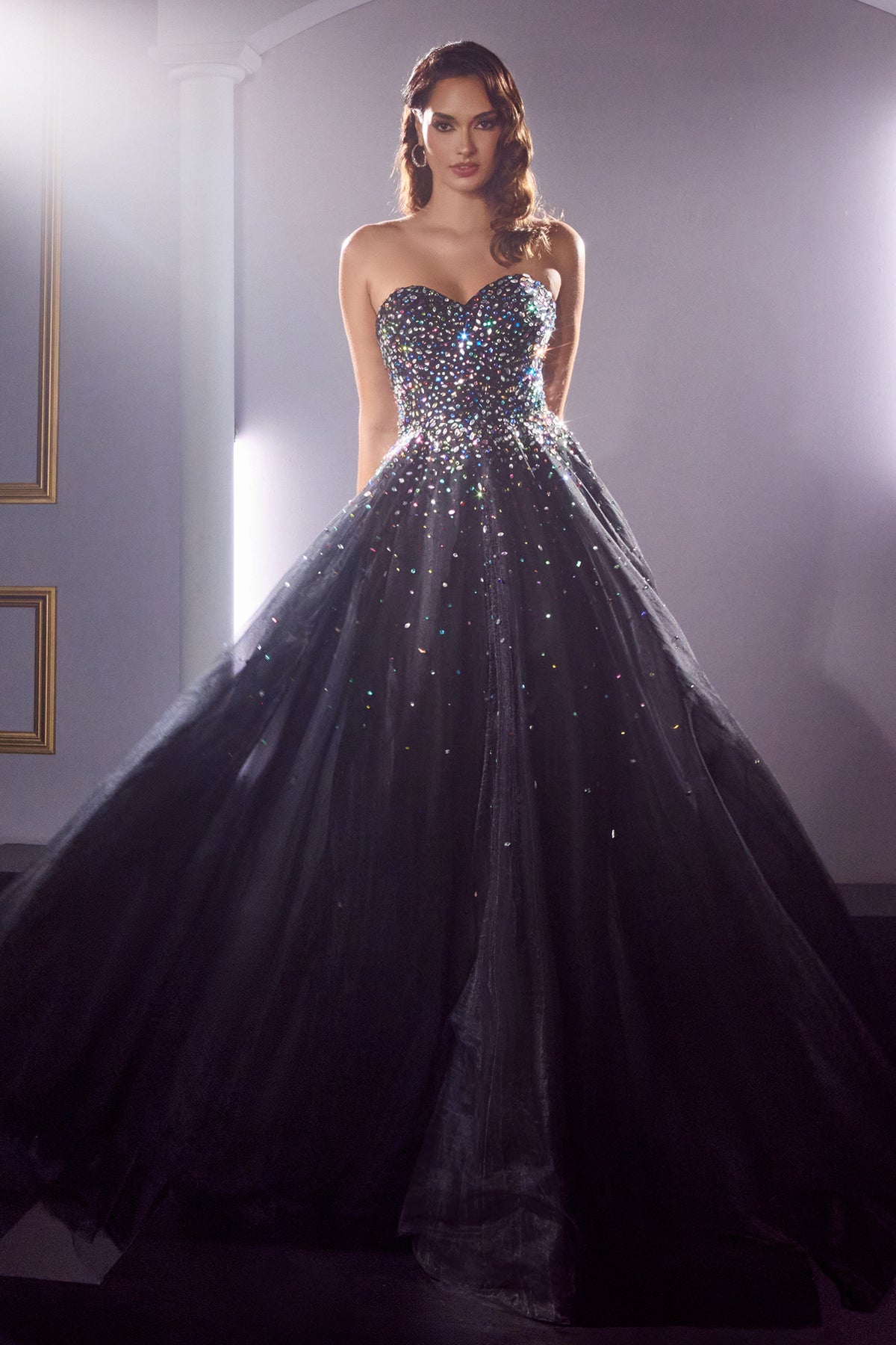 CINDERELLA DIVINE CB114 Bejeweled Strapless A-Line Ball Gown