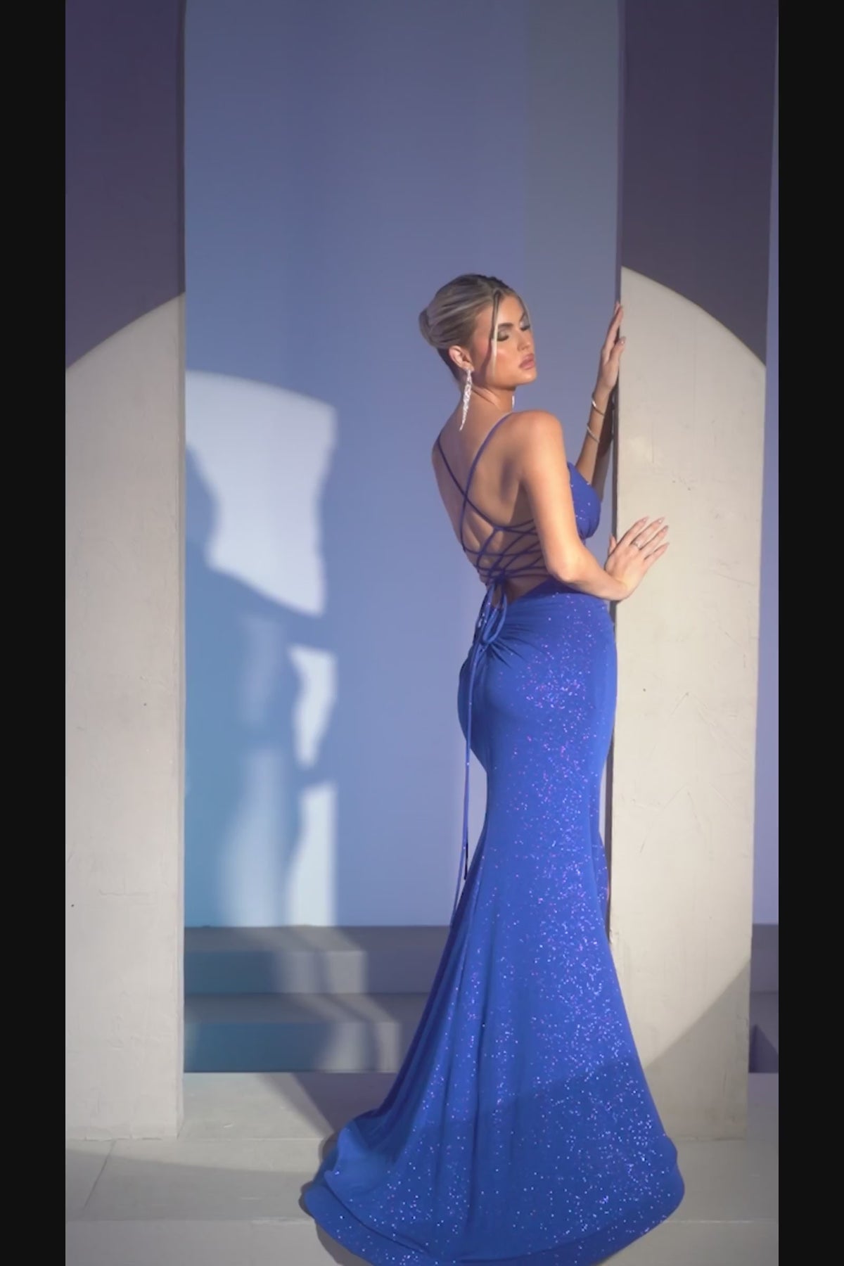 Radiate confidence and elegance in the enchanting Cinderella Divine CC2162 gown. Crafted in a mesmerizing sparkly stretch fabric, this dress hangs gracefully from delicate spaghetti straps. The deep v-neckline is accentuated by a sheer inset detail, adding a touch of allure to the design. The open back is adorned with intricate strap details that create a captivating spectacle. The tailored skirt flows into a flattering trumpet silhouette, offering a sexy slit that adds a hint of drama. As you move, the skirt gracefully trails behind, forming a sweeping train that exudes sophistication and glamour. With its stunning details and flattering fit, this Cinderella Divine creation ensures you'll shine from every angle.