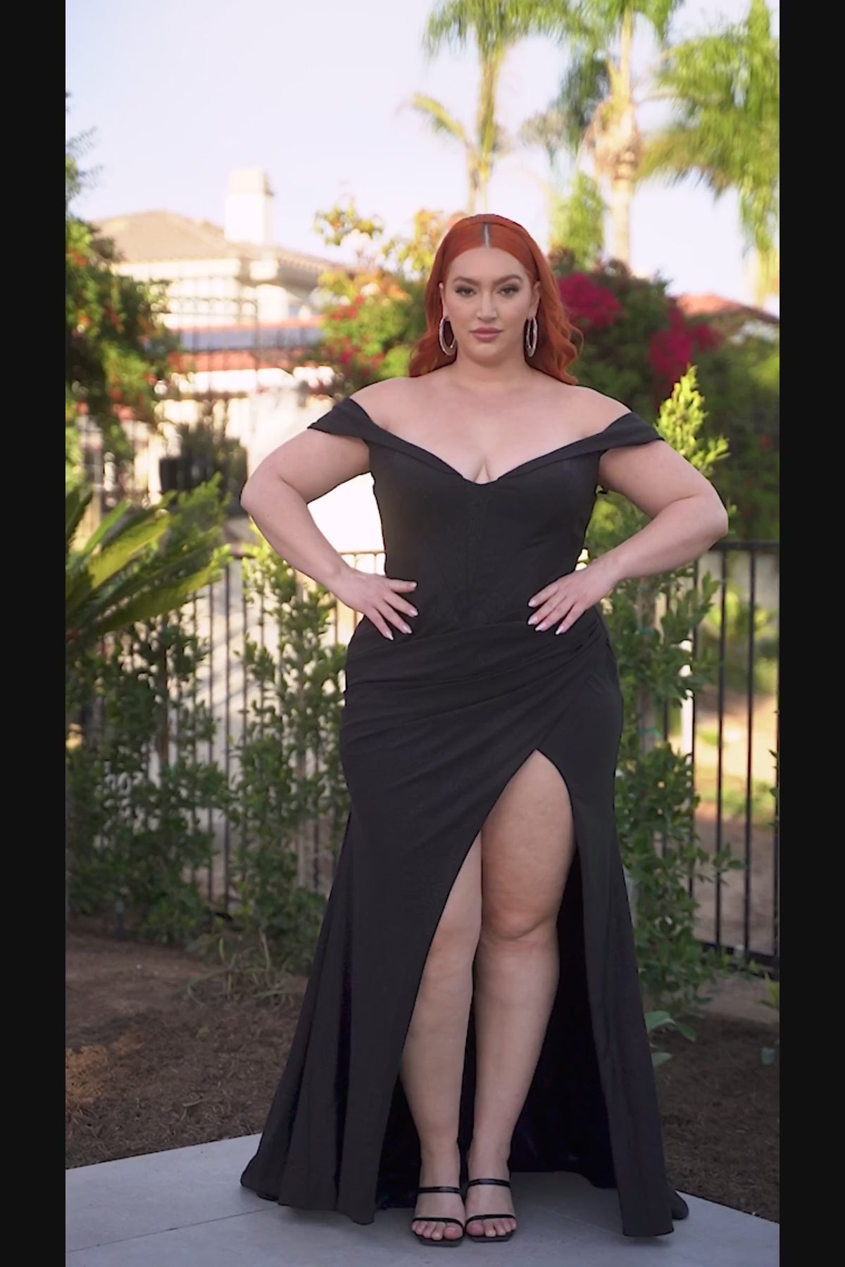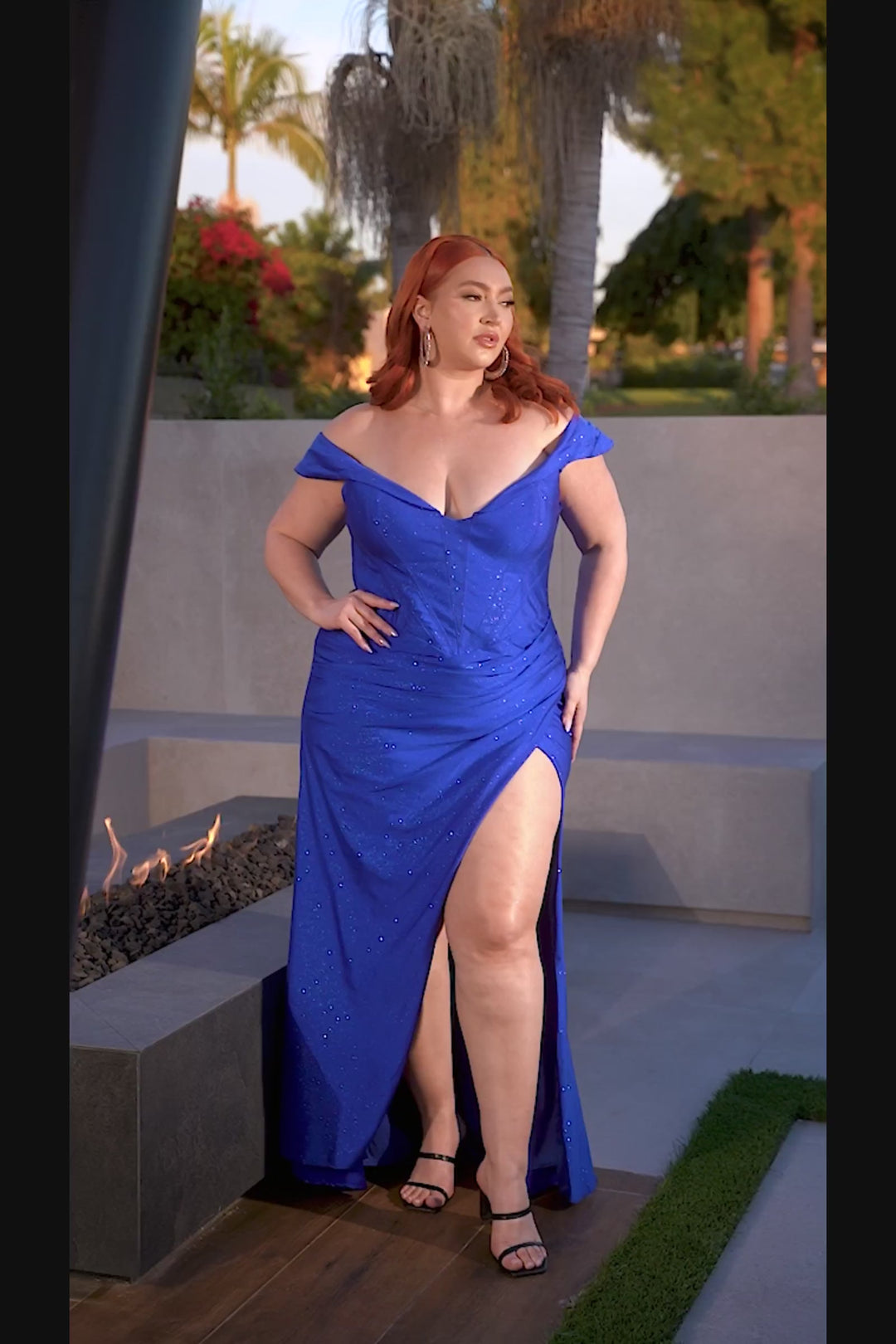 Emanate sophistication and glamour at your glamorous event in this Cinderella Divine CC2212 creation. The gown exudes opulence with its meticulously tailored lines and dazzling glitter embellishments that grace the silhouette. The corset-style bodice cinches your waist and features a basque waistline, beautifully complemented by the off-shoulder neckline. Cascading accents on the bodice add an enchanting touch. The skirt showcases a sultry high slit, adding a dash of allure to the design, as it flows gracefully into a floor-sweeping hemline. With its captivating details and elegant style, this Cinderella Divine gown ensures you'll make a stunning entrance that leaves a lasting impression.!