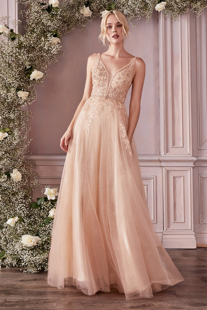 CINDERELLA DIVINE CD0196 V-Neck Embellished Tulle Dress