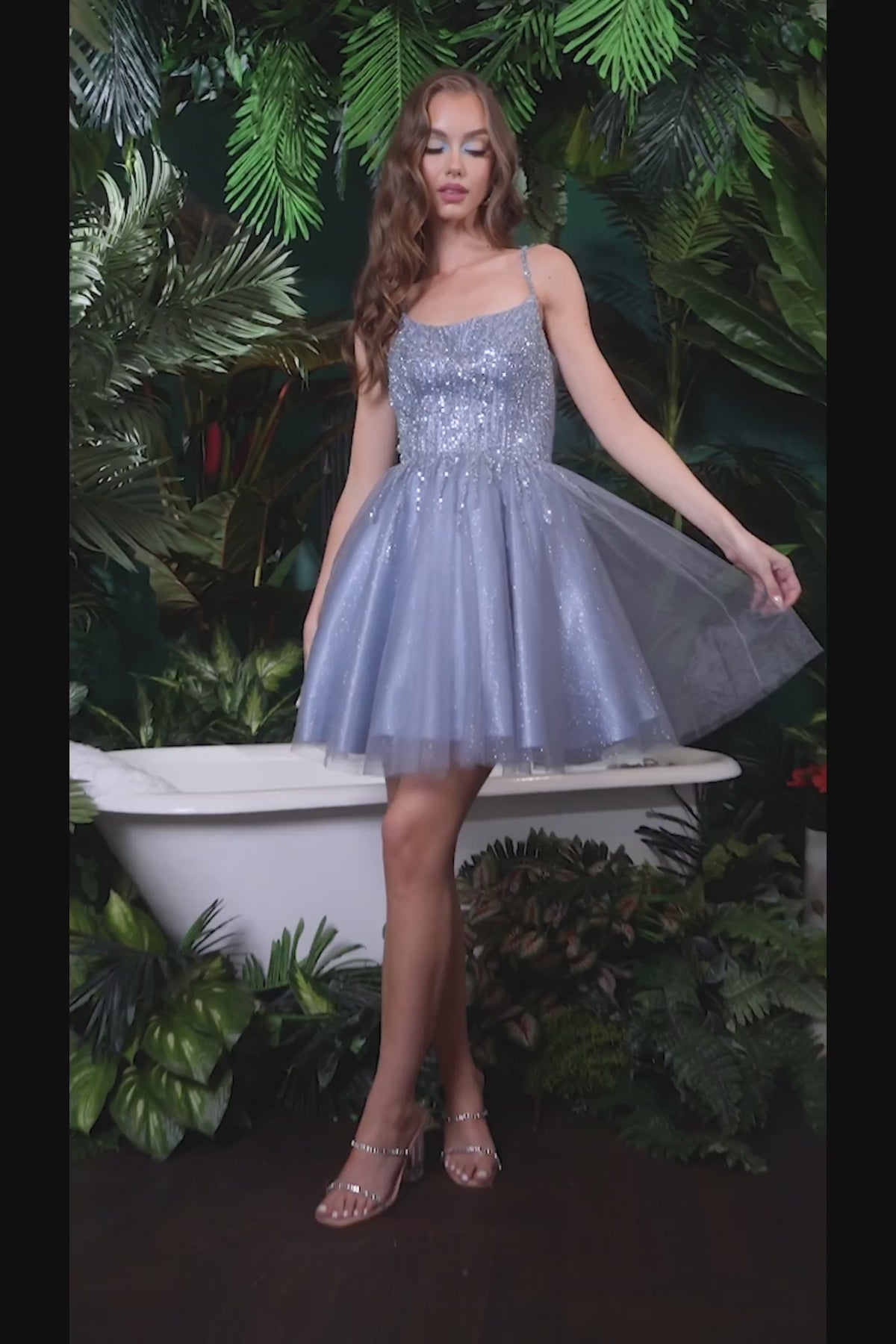 Indulge in the romantic allure of the Cinderella Divine CD0212 creation. Crafted with meticulous tailoring on a glittering novelty silhouette, this dress exudes elegance. The scoop neckline, supported by delicate thin shoulder straps, adds a touch of sophistication. The deep v-open back enhances the gown's allure, while the skirt gracefully flares and shimmers, culminating in a charming short A-line silhouette. This dress is a perfect choice for those who seek a blend of romance and glamour.
