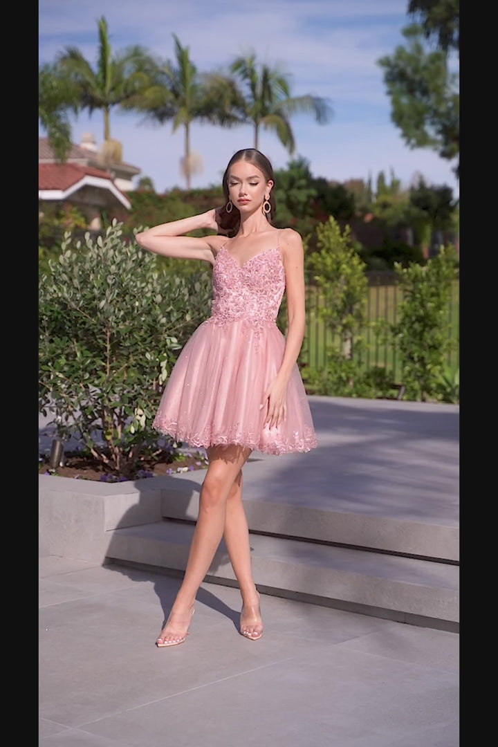 Command attention in the captivating Cinderella Divine CD0213 creation. The sleeveless fitted bodice, adorned with intricate floral embroideries, boasts a graceful V-neckline and delicate thin straps. The enchanting V-shaped open back adds a touch of allure, ensuring you're the center of attention at your special event. This winning ensemble is completed with a mid-thigh tulle skirt that elegantly flares into a flattering A-line silhouette. Prepare to dazzle and leave a lasting impression in this exquisite gown.