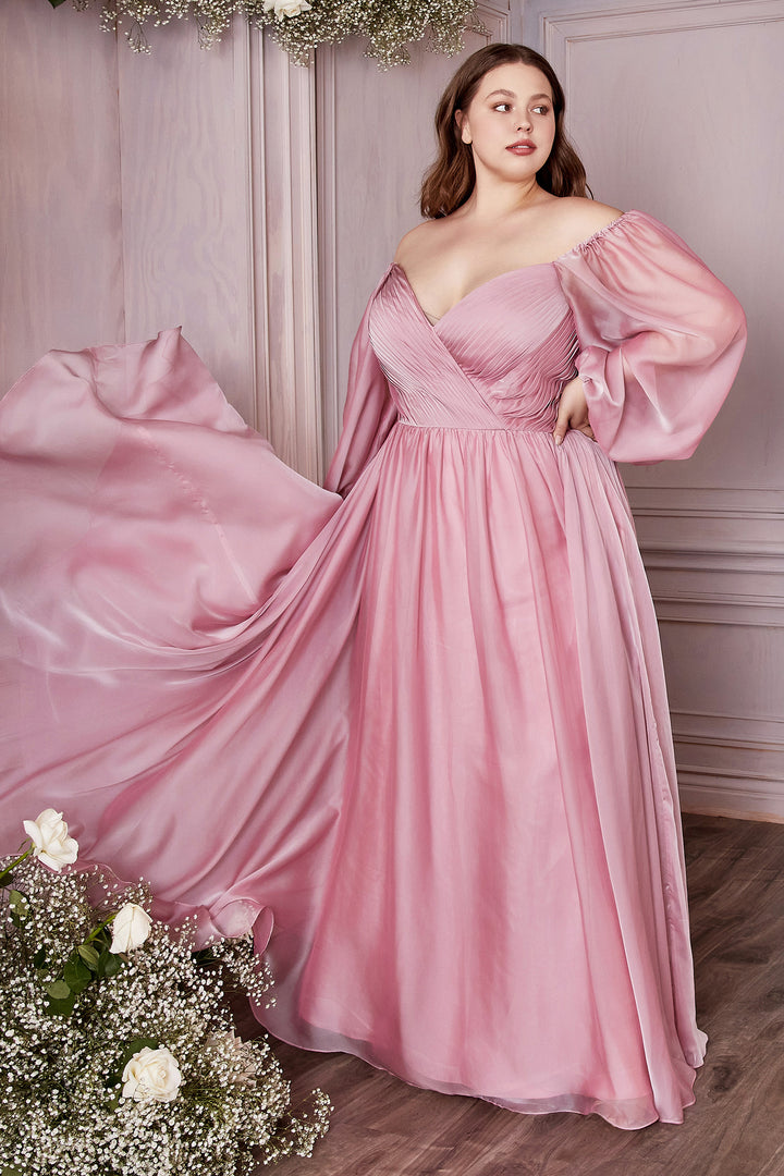 CINDERELLA DIVINE CD243C Plus Size A-Line Long Sleeve Chiffon Gown