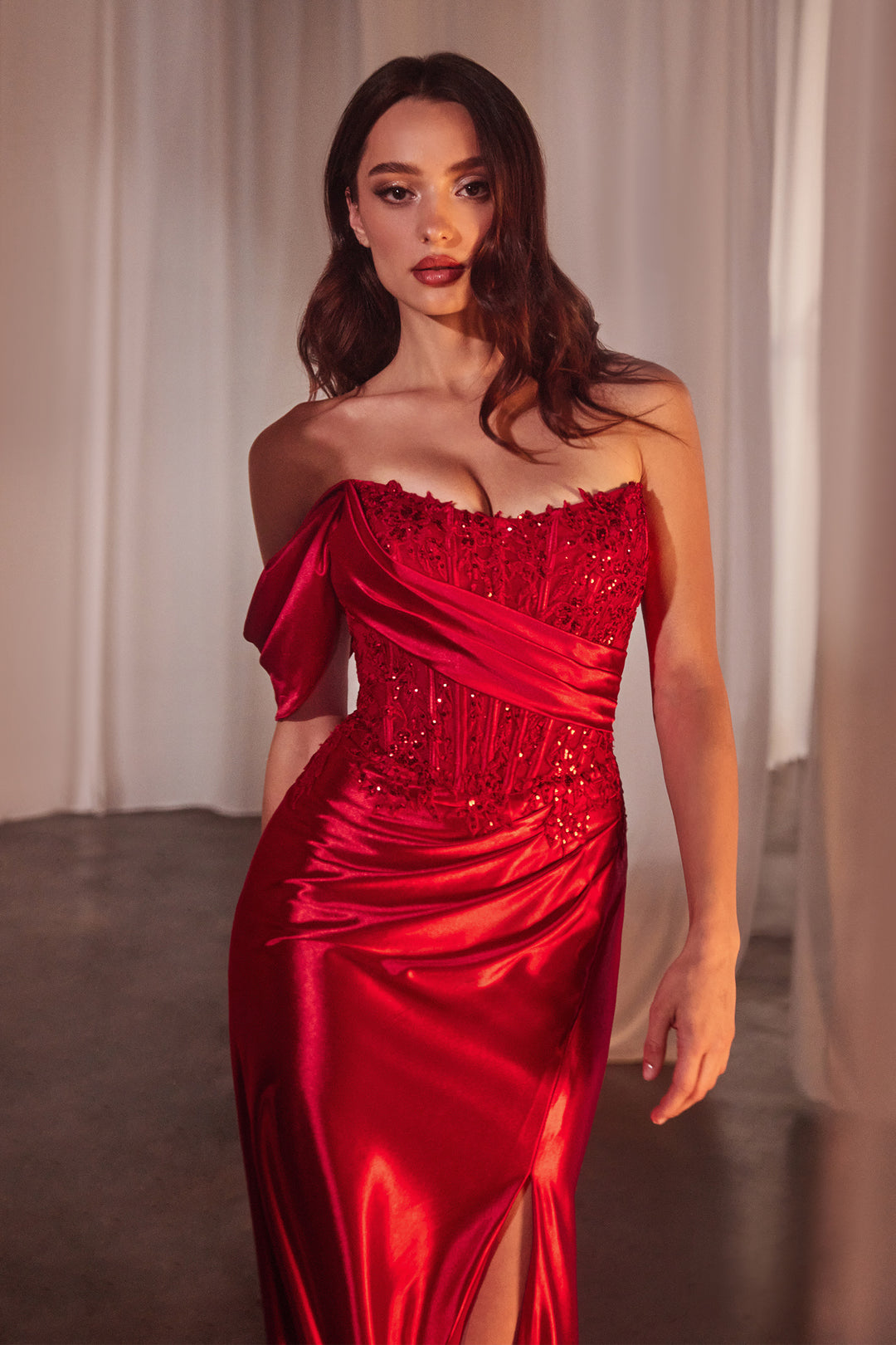 CINDERELLA DIVINE CD804 Lace & Satin Fit & Flare Gown