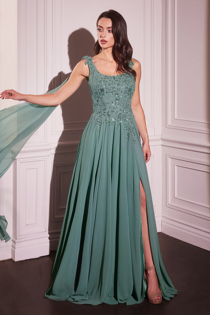 CINDERELLA DIVINE CDS509 Chiffon A-Line Gown & Long Cape Sleeves