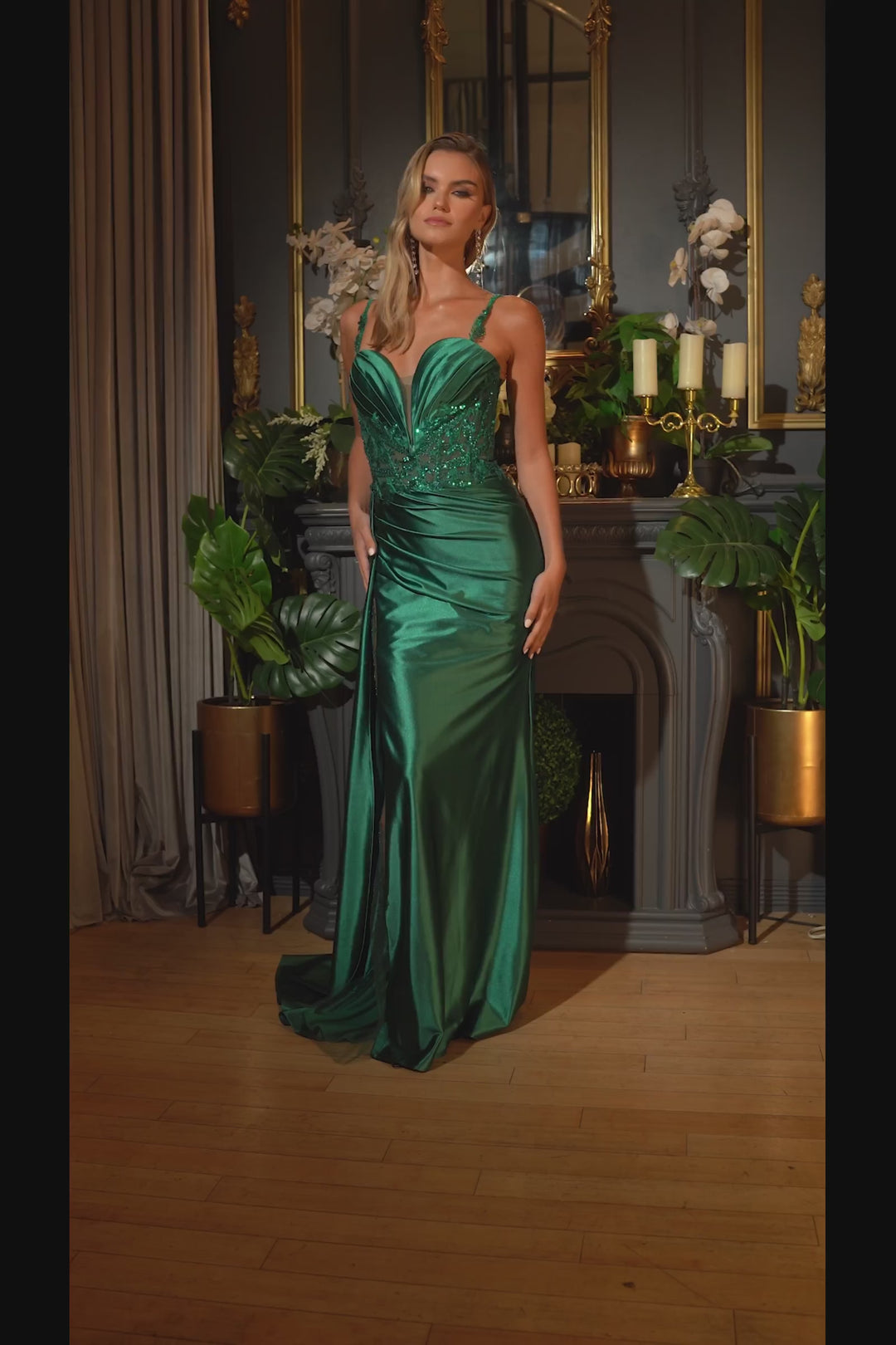 Leave everyone in awe with the captivating allure of the Cinderella Divine CDS417 creation. This fitted satin gown effortlessly combines sultry and glamorous elements, making it the perfect choice for your upcoming formal event. The gown boasts intricate lace embellishments at the waistline, adding a touch of elegance to the ensemble. The pleated bust and embellished straps enhance the overall appeal, while the beaded sheer leg slit lends a seductive touch. The side satin sash and ruched back detail contribute to the gown's luxurious aesthetic. As you walk, the high-gloss fabric catches the light, creating a mesmerizing sparkle that beautifully accentuates your curves. Embrace your enchanting personality and radiate sensuality in this exquisite satin dress, truly embodying Hollywood royalty.