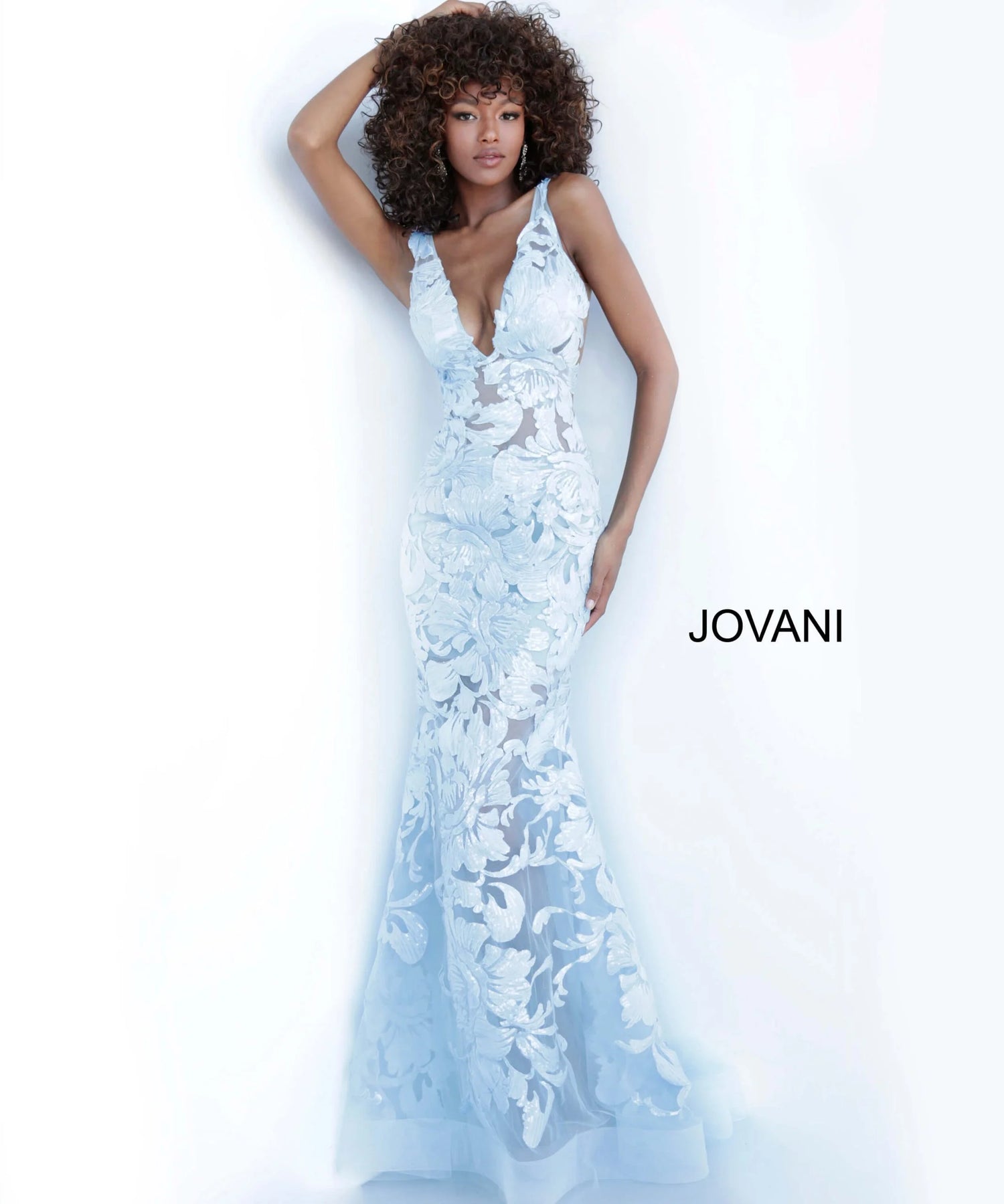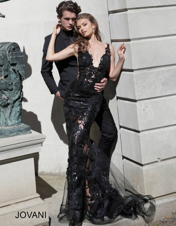 Shine bright at any evening event in the Jovani 60283 Dress. Featuring a stunning sleeveless design with a plunging V-neckline, this dress enchants with its figure-enhancing bodice. The trumpet skirt is adorned with shimmering sequins that flow down to a graceful sweep train. Embrace your beauty in this exquisite full-length gown from Jovani, perfect for turning heads and making a lasting impression.