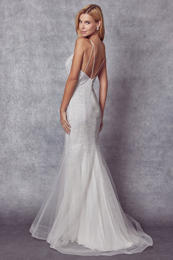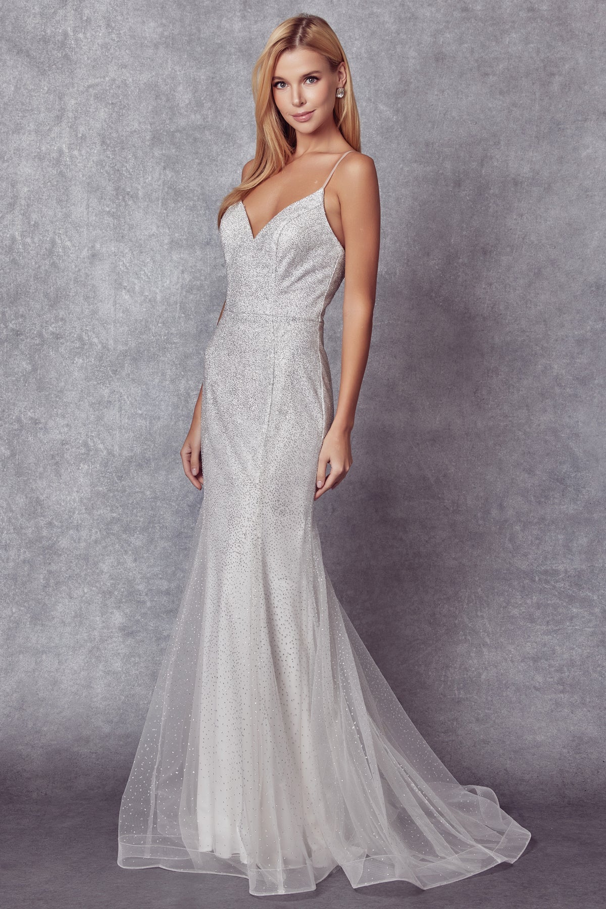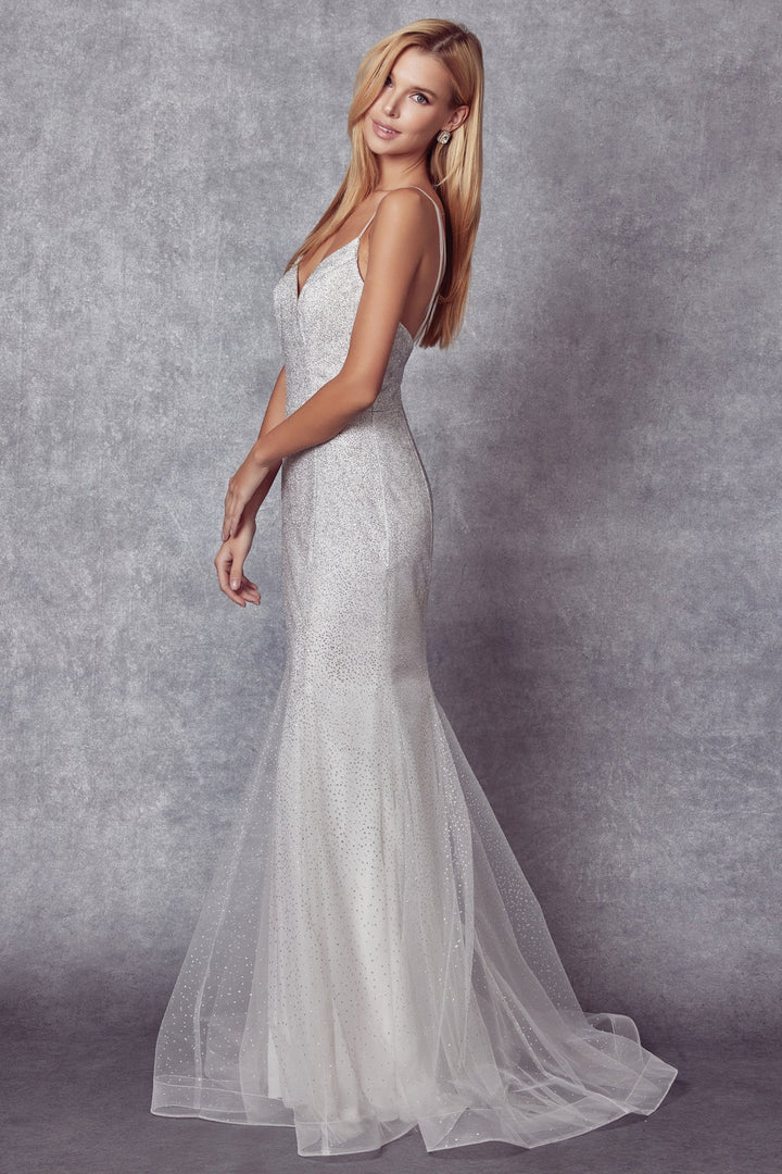 JULIET 271W Glitter Mesh Fitted Evening Gown