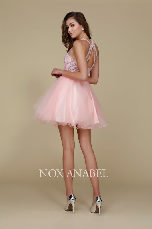 NOX ANABEL B652 Embroidered Bodice Tulle Short Cocktail Dress