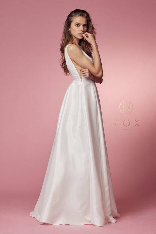 NOX ANABEL E156W Deep V-Neck Bridal Taffeta Dress