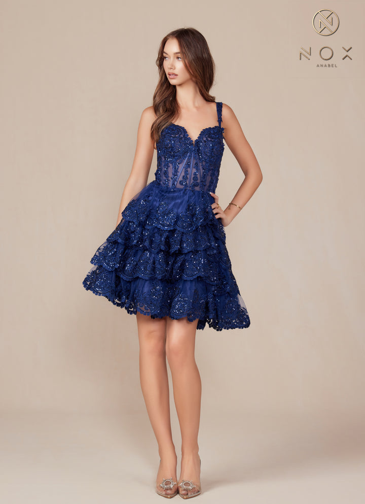 Nox Anabel R880 Sweetheart Ruffle Tiered Short Dress