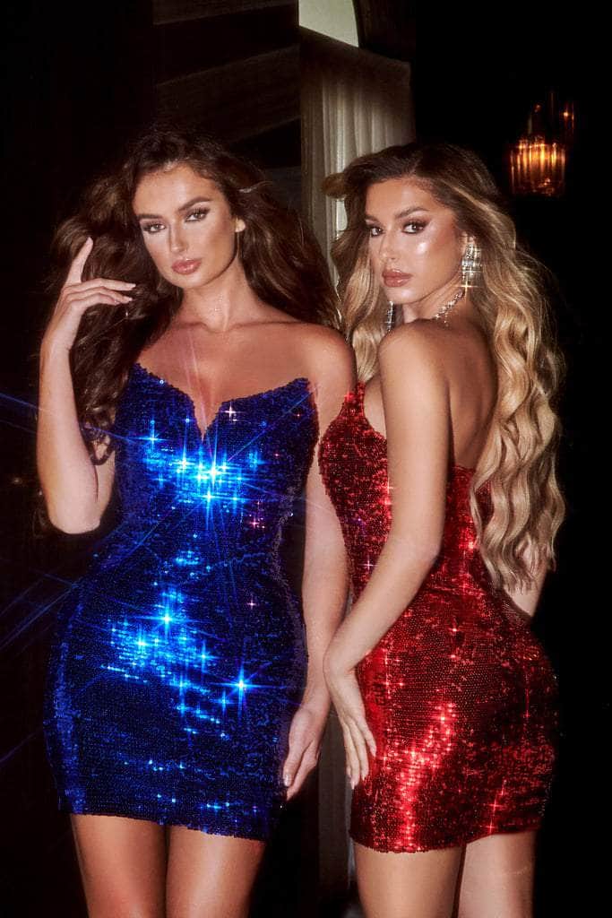 Step into a world of luxury with the stunning Portia and Scarlett PS23120 cocktail dress. This dress exudes glamour, adorned with intricate sequins that create a dazzling effect. With a strapless, V neckline and a basque waist, it flatters the figure beautifully. The sheath skirt hugs every curve, culminating in a short hemline. Available in Cobalt, Red, Emerald, and Pink, this Portia and Scarlett masterpiece will ensure you shine all night long.